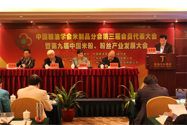 中国粮油学会理事长张桂凤出席会议并作了重要讲话。中国粮油学会首席专家名誉会长王瑞云到会作了题为《我国粮食生产、加工简况及发展趋势》的专题报告。来自全国各地米制品行业的企业家、专家学者、采购商、供应商代表参加了会议。