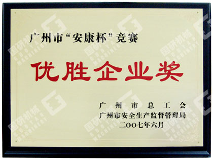 近年来,广州市国研机械设备制造有限公司以“三个代表”重要思想为指导,从保护员工生命安全、保护生产力、维护企业改革、发展、稳定大局的高度出发,紧紧围绕“安全第一、预防为主、综合治理”主题,牢牢把握组织保证,强化意识,规范行为和创造环境四个关键环节,创造性地开展“安康杯”竞赛活动,保证了安全生产持续、稳定发展。公司自1998年创立以来,十余年无一重大伤亡安全责任事故,无一员工患职业病,切实保障了员工的身体健康。安全绩效一直处于广州市机械制造行业领先水平,2006年以来,公司连续三年荣获广州市天河区安全生产先进单位。